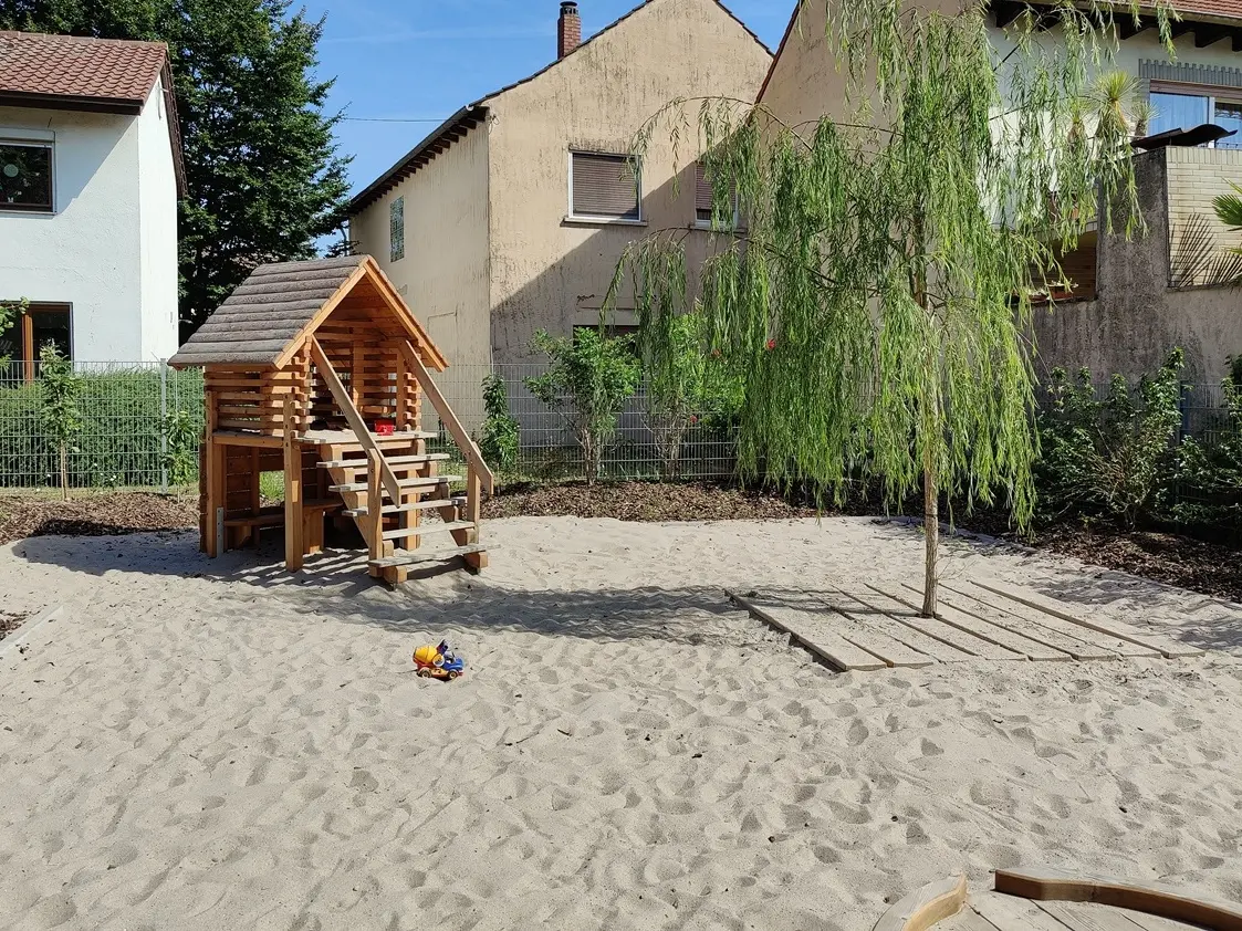 Unser großzügiger Garten lädt täglich zum Spielen, Bewegen und Forschen ein. Hier buddeln Kinder im Sand, fahren mit Fahrzeugen, erleben Wind und Wetter und entdecken in unserem Naschgarten Kräuter, Beeren, Obst und Nüsse – Natur mit allen Sinnen.